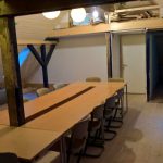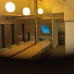 Aber am Samstag Abend durfte dann erstmals eine Stell- und Lichtprobe her. Auf den Fotos sieht man es leider nicht ganz so toll, aber die gelb-roten Lampen, die Holzverkleidung und die Möbel in warmen Holztönen geben dem Raum eine tolle Atmosphäre, so dass er in Zukunft nicht nur als Schlafraum für bis zu 20 Personen sondern auch als weiterer Seminarraum für unsere naturkundlichen und waldpädagogischen Seminare, insbesondere aber auch Teamerfortbildungen dienen kann.